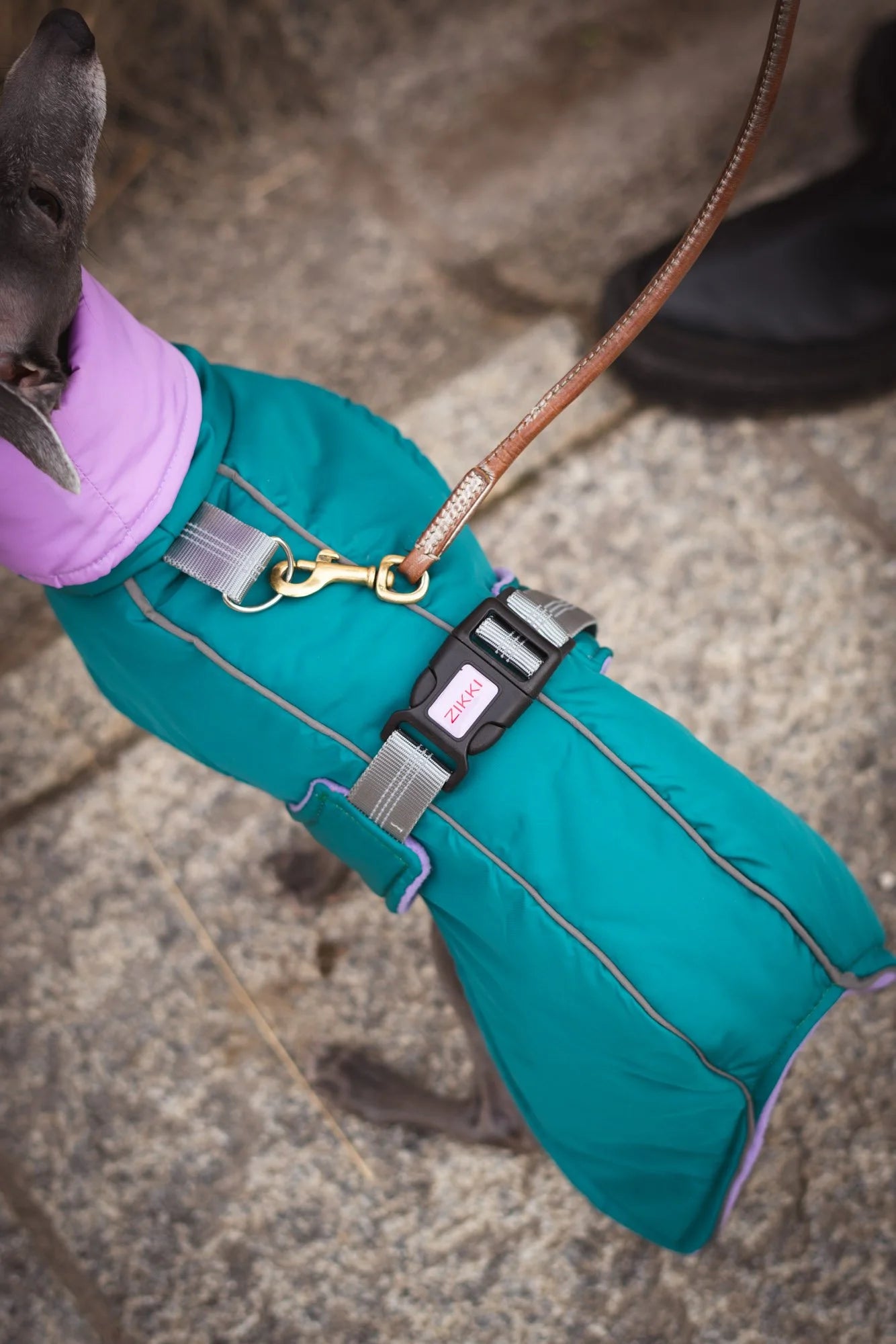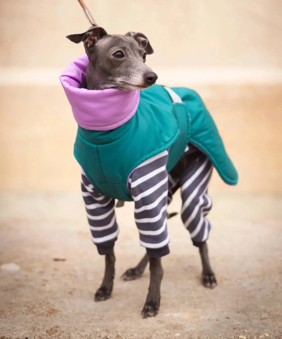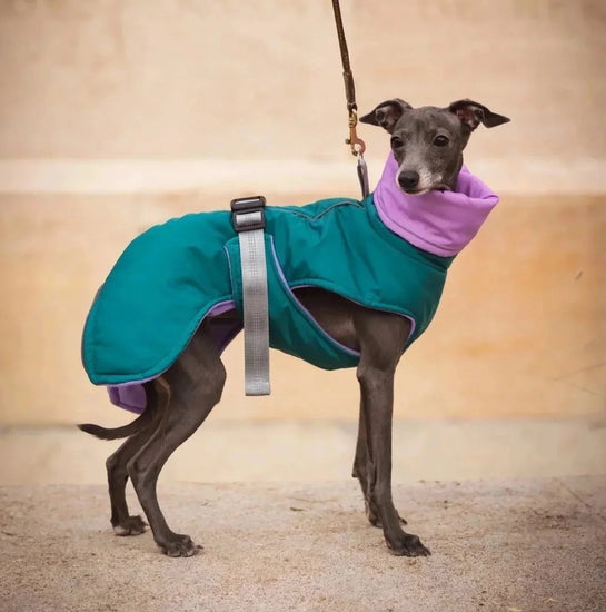 Elegante ärmellose Jacke für den Alltag. Unglaublich leicht und bequem, entwickelt mit den besonderen Bedürfnissen von Italienischen Windspielen. Verfügt über eine markenprägte Ein-Klick-Schnalle, integrierte Leinenbefestigung für einfache Spaziergänge sowie reflektierende Paspeln und Riemen an der Schnalle für bessere Sichtbarkeit. Erhältlich in zwei Varianten: